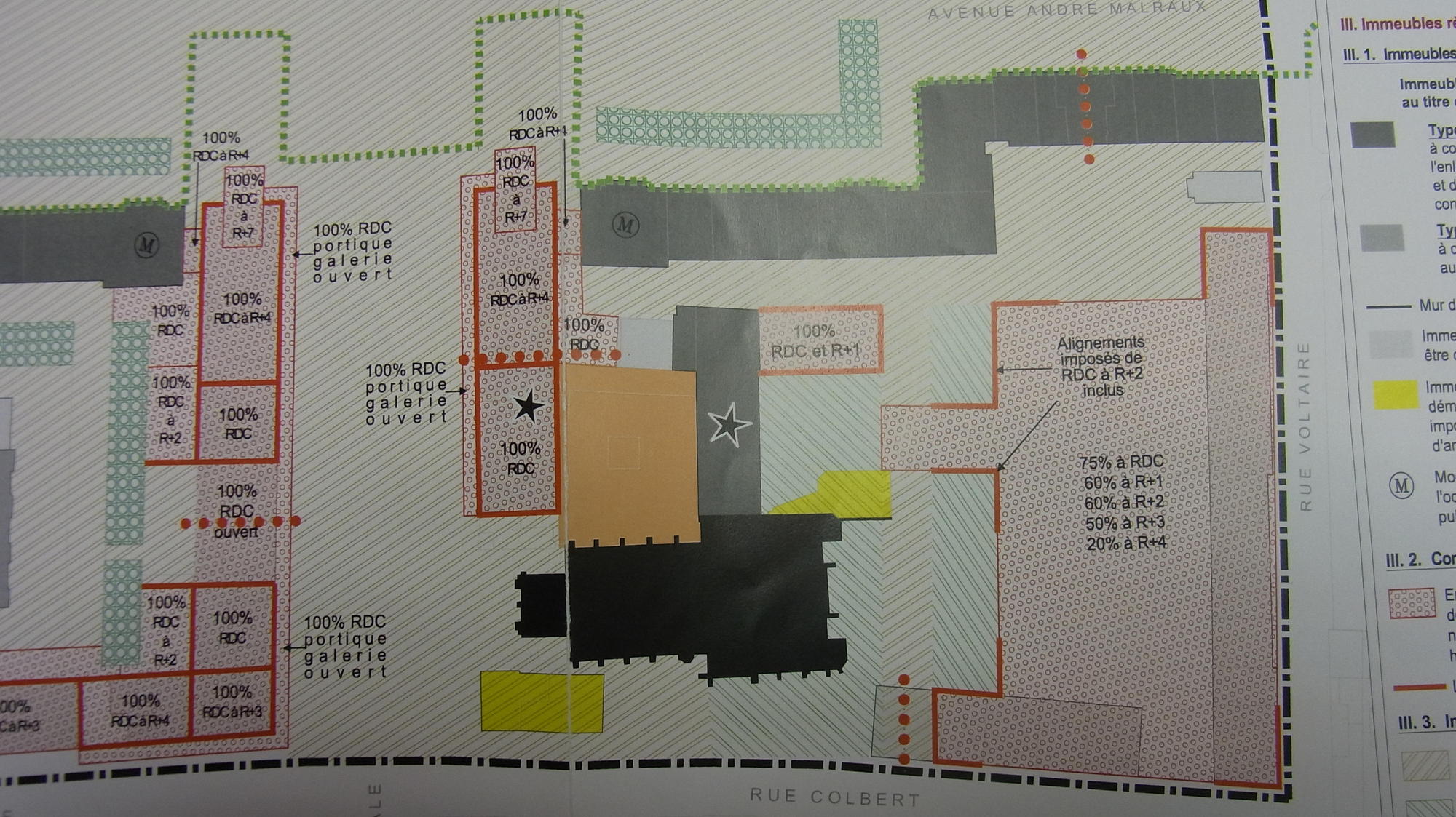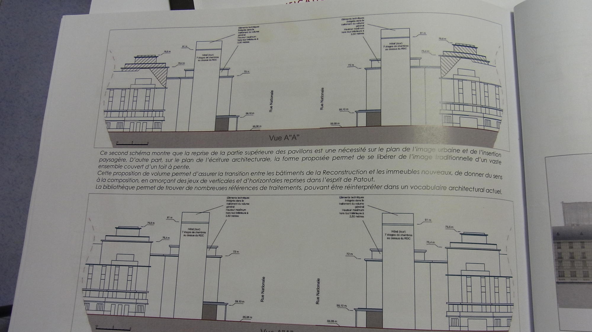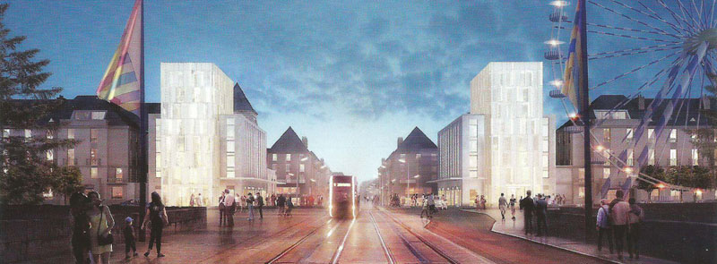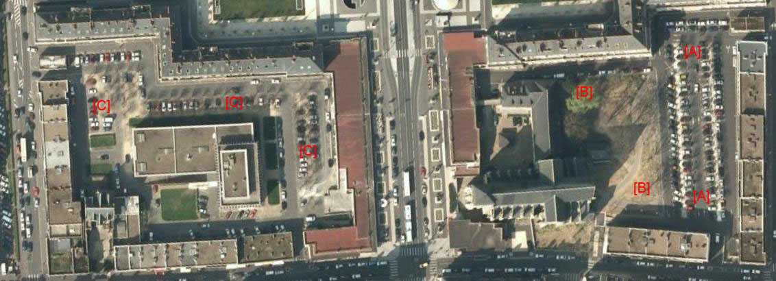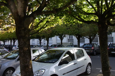 | La reconstruction qui se situe dans une période de développement euphorique de la circulation automobile, s'est efforcée de favoriser la pénétration du centre et la majeure partie des espaces libres a été transformée en parkings. C'est ainsi que le cœur des îlots reconstruit a été systématiquement macadamisée de façon à pouvoir recevoir des voitures. Les places, comme par exemple celle de la Résistance, ont été conçues comme des parkings, les espaces verts soigneusement comptabilisés par le Service Municipal, y sont réduits à une rangée d'arbres et à quelques massifs disposés sur le pourtour de l'aire centrale, qui, elle, est entièrement livrée à l'automobile. Certains de ces espaces ont été baptisés squares ou jardins alors que la fonction parking y est prédominante. […] Ce mode de traitement s'est étendu au delà du secteur de reconstruction, aussi bien dans le tissu ancien réhabilité que dans les zones de rénovation. |