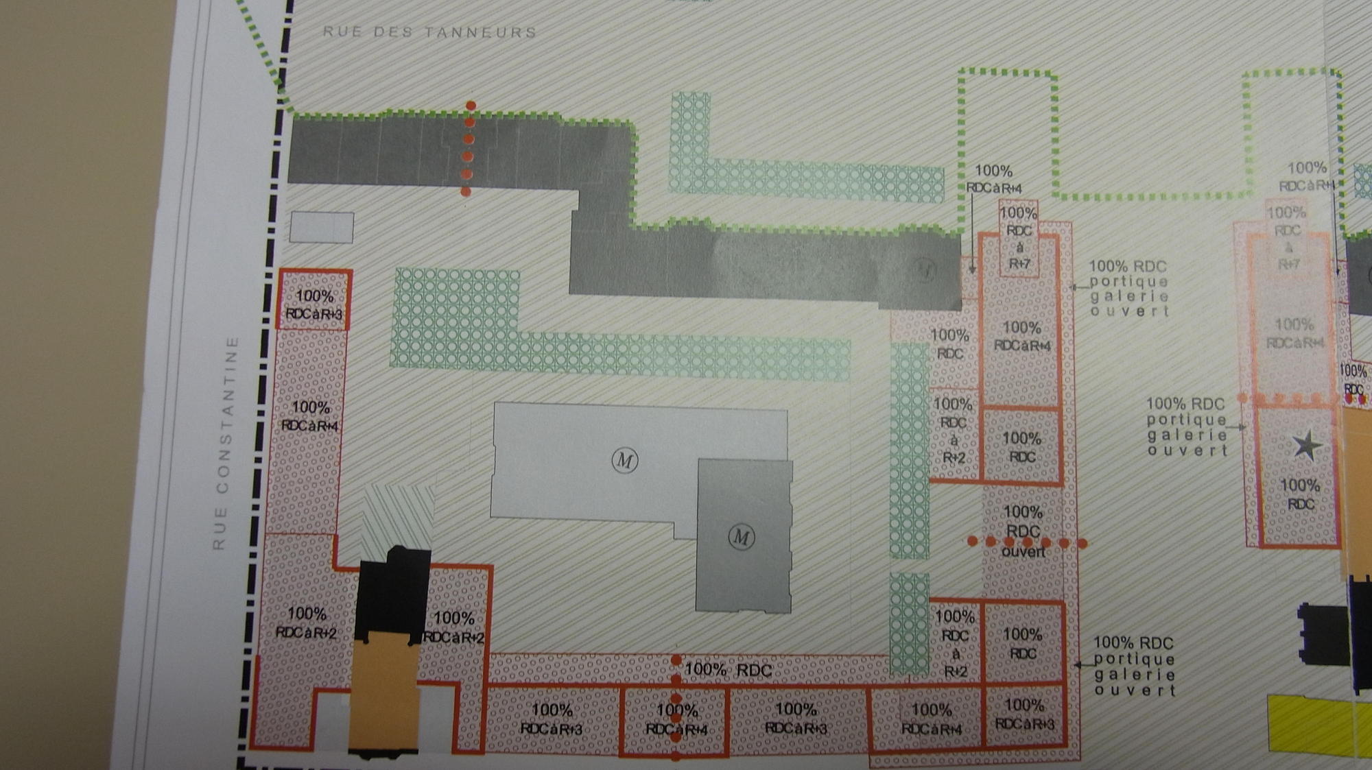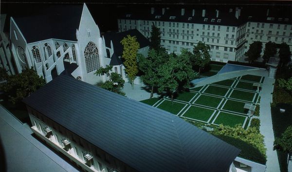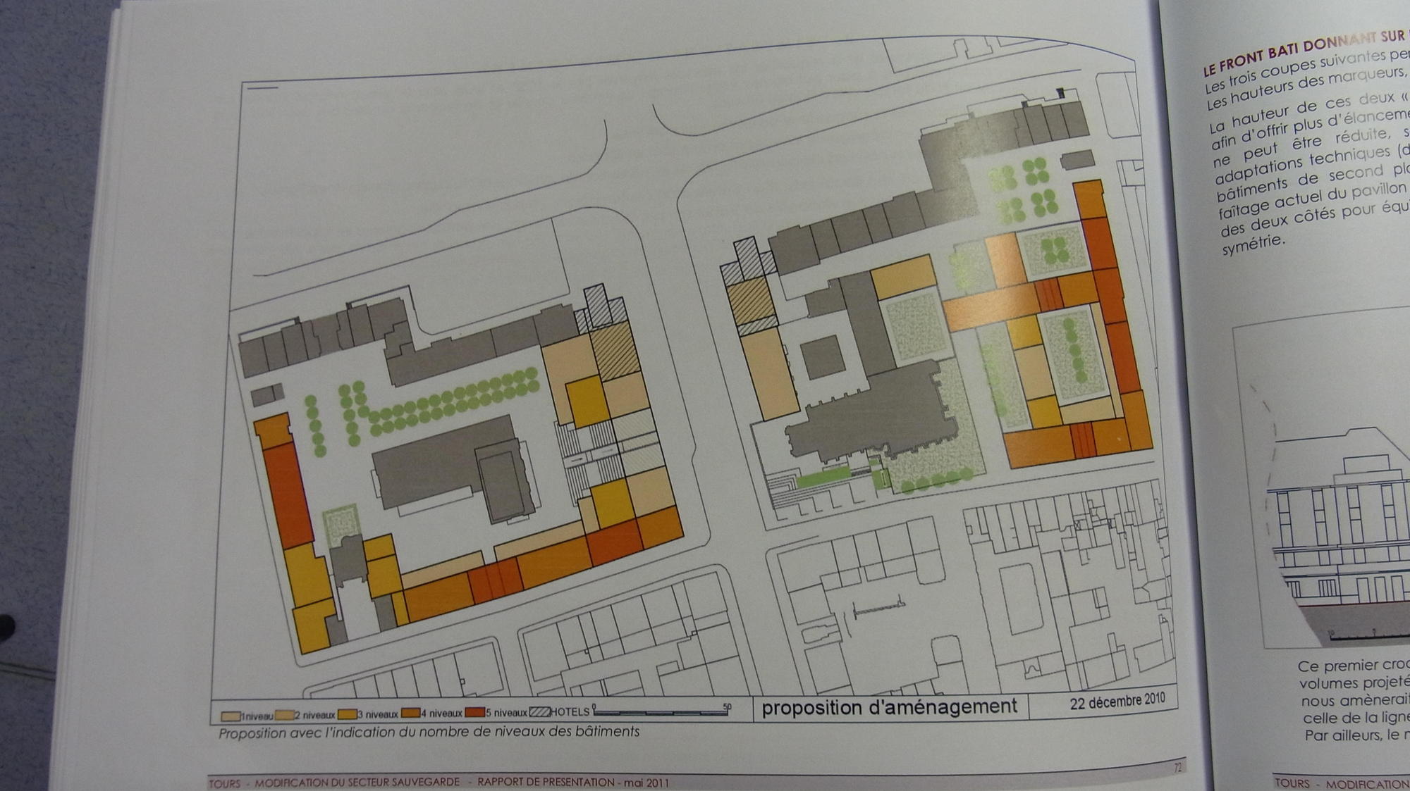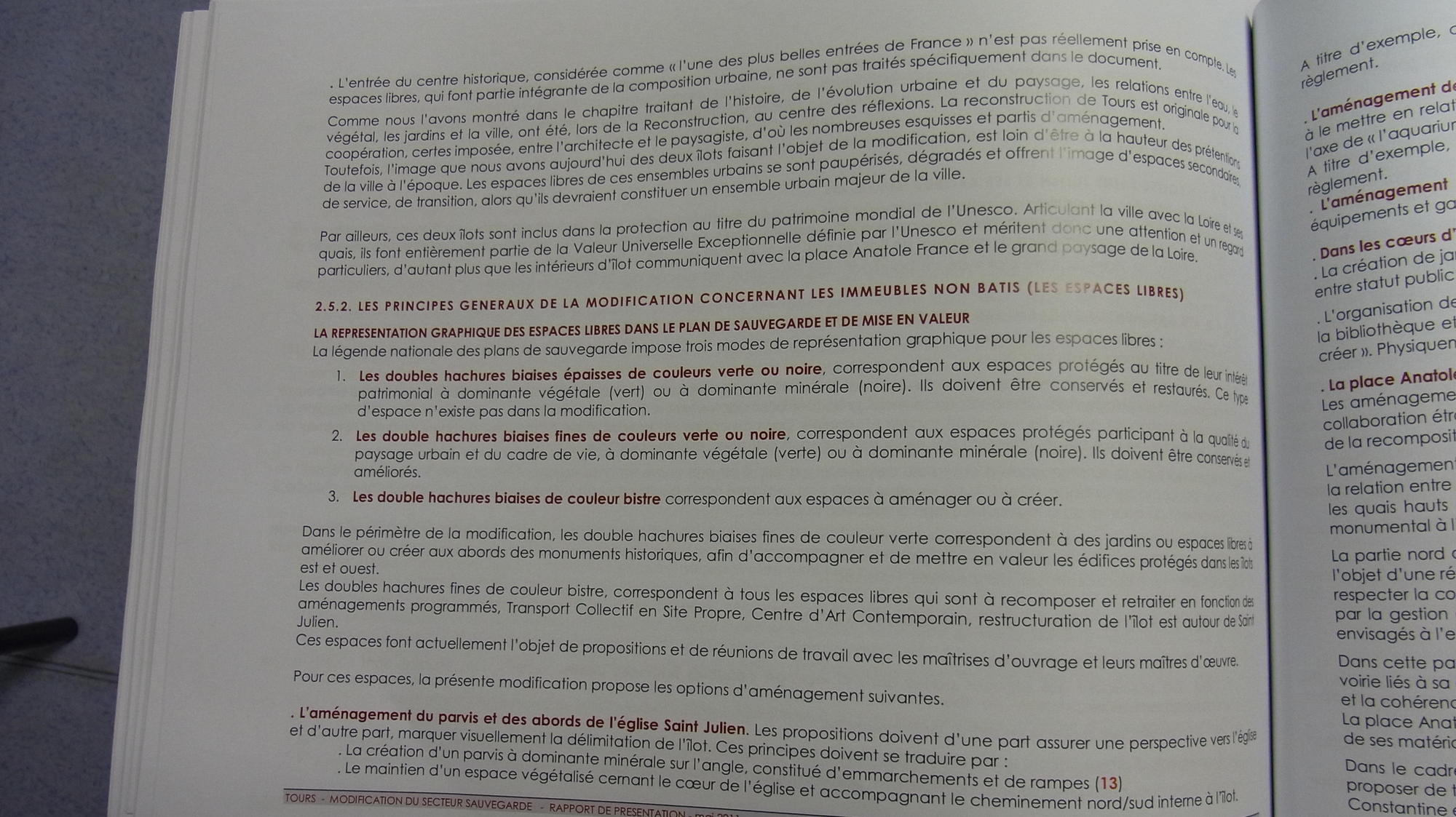 | La reconstruction qui se situe dans une période de développement euphorique de la circulation automobile, s'est efforcée de favoriser la pénétration du centre et la majeure partie des espaces libres a été transformée en parkings. C'est ainsi que le cœur des îlots reconstruit a été systématiquement macadamisée de façon à pouvoir recevoir des voitures. Les places, comme par exemple celle de la Résistance, ont été conçues comme des parkings, les espaces verts soigneusement comptabilisés par le Service Municipal, y sont réduits à une rangée d'arbres et à quelques massifs disposés sur le pourtour de l'aire centrale, qui, elle, est entièrement livrée à l'automobile. Certains de ces espaces ont été baptisés squares ou jardins alors que la fonction parking y est prédominante. […] Ce mode de traitement s'est étendu au delà du secteur de reconstruction, aussi bien dans le tissu ancien réhabilité que dans les zones de rénovation. |