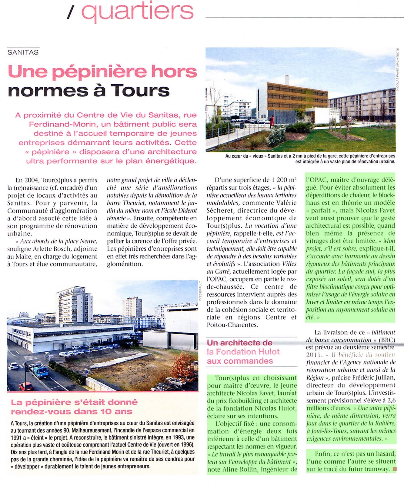 La pépinière d'entreprises qui doit être construite au Sanitas choque une partie des habitants du quartier par son architecture très ramassée qualifiée de blockhaus. L'on ne connaît que trop, hélas, la puissance langagière de ce genre de terme connoté péjorativement et stigmatisant. Il est très probable que ce qualificatif marquera négativement à jamais ce bâtiment, qui pourtant a des grandes qualités. L'image du quartier s'en trouvera même affectée. Par ailleurs, l'architecture proposée est martiale. Ainsi, plutôt que de se recroqueviller sur elle-même, cette pépinière ne devrait-elle pas être un lieu ouvert avec des lignes rondes ou élancées qui rompent avec la sévérité de l'architecture environnante ? (comme le font le palais des sports ou l'église) La municipalité est-elle disposée à renoncer à l'appellation blockhaus ainsi qu'à une architecture recluse pour rechercher une appellation et une forme qui invitent à l'épanouissement et qui n'évoquent pas la guerre ?