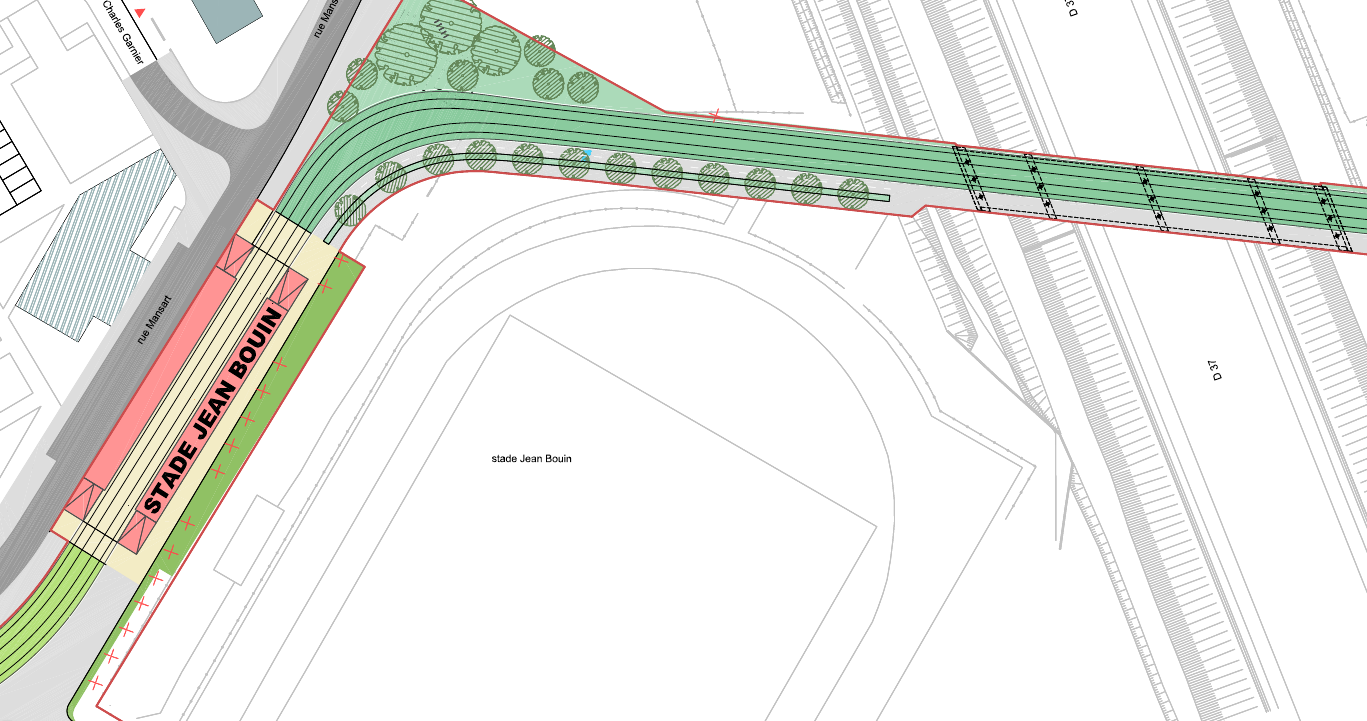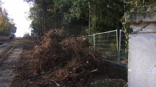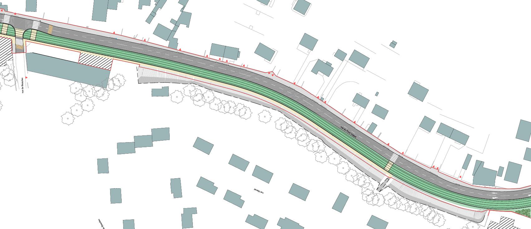 C'est la deuxième fois (avec Pilorget) que des arbres abattus hors de la voirie publique ne sont pas comptabilisés. Je crains que cet oubli soit systématique et qu'il y ait ainsi d'autres abattages en zone privée que je n'ai pas repérés, en nombre toutefois restreint. Je demande que l'impact sur le bois soit réduit au maximum. Est-ce vraiment possible ? Je n'en suis pas sûr, notamment parce que je pense que la présence d'une piste cyclable est justifiée. Mais il peut être étudié, par exemple, de remplacer le muret par un haut mur... | ![]() |