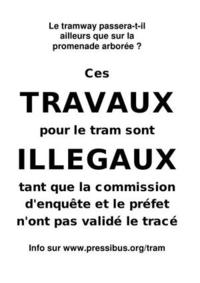 A peine l'enquête publique terminée, les travaux commencent, notamment avec la suppression du rond-point Saint-Paul au Sanitas. Comment est-ce donc possible alors que la commission commence son étude et que la D.U.P. est encore loin d'être délivrée ? C'est comme si un particulier commençait à bâtir sa maison sans avoir le permis de construire. La mairie a trouvé un subterfuge : ce sont des travaux de dévoiement de réseau, ca serait donc légal. Allons donc, tout le monde sait que c'est pour le tram, c'est Cité Tram, le maître d'oeuvre du tram qui, notamment, annonce les travaux sur son site et paye 1 puis 2 "tram'bassadeurs" pour les gérer auprès des habitants... C'est dénoncé dans une réunion le 3 août, au quartier des Deux Lions, mais personne n'évoque les véritables raisons de cette précipitation : tout doit être fini ou presque avant les prochaines élections municipales de 2013.
