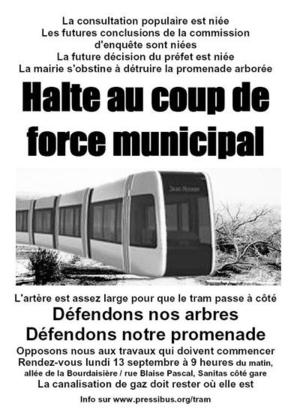 On verra comment, progressivement, le citoyen pro-tramway que je suis est passé de la défense des arbres à une opposition au projet municipal de tram et à la promotion d'un tram-train à l'échelle départementale.