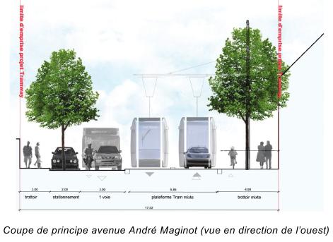 - Les voies de tramway doivent être engazonnées au niveau de l’avenue MAGINOT.