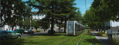 Et elle continuera à se transformer dans le même sens, car le tramway sert de tremplin à une intensification de ces méthodes. Le Plan Local d'Urbanisme (PLU) en préparation définit un couloir de 400 mètres de chaque côté du tramway où l'habitat sera "densifié", avec des règles permettant de construire davantage, au détriment bien sûr de la nature. Ainsi quelques grandes tours sont prévues, notamment une à côté de la gare. Croyez-vous que tout le monde prendra le tramway pour aller dans cette tour ? Non, bien sûr, le trafic automobile sera encore plus congestionné...