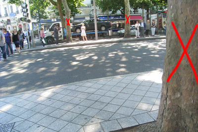 Ensuite (avant aussi, d'ailleurs), nous posons des affichettes "Ces travaux sont illégaux" sur les panneaux et barrières de travaux. J'écris au ministre de l'écologie (qui me dira qu'il avertit le préfet et le charge de me répondre, ce qu'il ne fera pas). La Vélorution du 2 octobre se mobilise pour le sauvetage du mail. Les travaux reprennent le 4. Le 5, nous nous rendons compte qu'ils sont en partie annulés. Nous croyons comprendre que la commission a condamné la partie nord du mail et a sauvé les parties sud et centrale. Nous cessons alors notre opposition aux travaux. Il s'avèrera que la commission a bien suggéré que le tracé soit dévié, mais elle n'a pas demandé à ce que les arbres soient sauvés, même en partie. Car, à son tour, elle a entonné le refrain municipal "C'est pas grave, on replantera !". Le maître d'ouvrage a ensuite refusé de dévier et donc de créer "l'espace de convivalité arboré" souhaité par la commission.