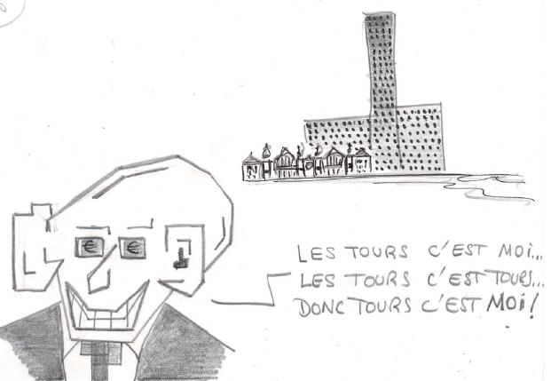Que ne fait-on pas avec de larges réseaux, de puissants soutiens, beaucoup d'argent et de la propagande ? On nous promet un tramway de moins de 300 millions hors du budget municipal mais son coût a déjà augmenté de plus d'un tiers, l'argent coule à flot pour la comm', le "design", des aménagements superflus... La dette se déplace de la ville vers l'agglo... On se vante d'harmoniser la ville et la nature, on brandit son label "Ville fleurie" mais on saccage son patrimoine arboré. On chante les louanges des circulations douces mais, en centre-ville, on démolit une longue promenade piétonne, on ajoute des parkings, on minéralise, et de plus avec les "incontournables" pavés chinois si écologiques… On se gausse de maîtriser les dépenses énergétiques mais on construit des tours énergivores, on multiplie les panneaux publicitaires lumineux. On affiche un label "Ville Internet" mais la fibre reste inaccessible aux particuliers, les données municipales sont toujours aussi peu partagées et opaques. On se gargarise d'écouter les citoyens mais on les vidéosurveille, on leur ajoute deux tours quand ils refusent qu'on en construise une. On loue la démocratie locale mais un sujet aussi essentiel que le Plan Local d'Urbanisme est soustrait des Conseils de Vie Locale, réduits à des hochets d'occupations annexes. On annonce du beau, de l'écolo, du social, de l'intégration, de l'innovation et, hormis quelques exceptions brandies, mais on voit arriver du terne, de la pollution, des coûts immobiliers qui grimpent, des constructions d'immeubles du XXème siècle cachées derrière un charabia vert. Pauvres et précaires partent en périphérie. Et il y a tout ce qu'on cache, comme des constructions soumises au risque d'inondation le long du Cher… Le pompon de ce cynisme planifié est la participation à cette mascarade de trois conseillers municipaux soi-disant écologistes, potiches avaleuses de couleuvres. Le maire ne s'était pas trompé en baptisant l'un d'entre eux "adjoint à l'exemplarité environnementale' ! Et que dire des adjoints du Front de Gauche qui, tout autant serviles, soutiennent à fond l'anti "révolution citoyenne" du maire et le grand capitalisme des Bouygues et Vinci ? La minorité est soumise à la zizanie, l'unanimisme majoritaire est de règle, chacun y trouvant son compte. Ah, Tours, "la ville qui vise l'excellence"... "Le changement, c'est maintenant", nous dit-on. Peut-elle finir, cette hypocrisie du double langage ? Il serait encore temps de demander l'avis des Tourangeaux et d'opérer des rectifications... Le changement serait de sortir du "système Germain". Quels conseillers municipaux l'oseront ? Pour dénoncer cet état de faits, notre collectif lance une pétition "A Tours les arbres tombent, l'affairisme pousse" (accessible à partir de notre site http://gareauxtours.fr) axée sur le refus de construction de tours près de la gare. Si vous partagez notre analyse, exprimez-vous, signez et faites signer. |