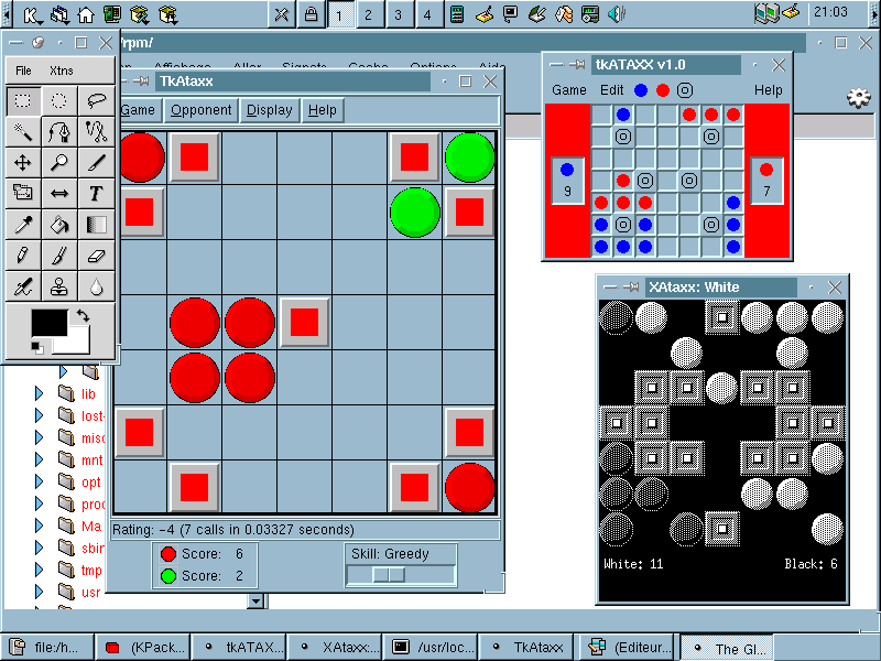 KFM, et en avant-plan le logiciel de dessin Gimp (qui a permis de capturer