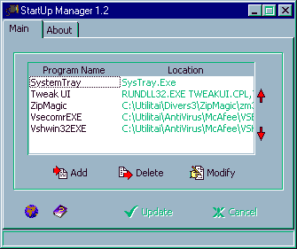 - Même si ce programme permet d'ajouter, supprimer ou modifier des programmes dans cette liste, il vaut mieux se contenter de visualiser et utiliser les programmes habituels d'installation et désinstallation. Mais il y a parfois des accidents (suppressions incomplètes...) et il est rassurant de savoir que Startup peut agir...