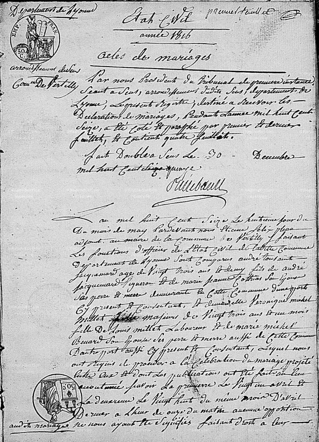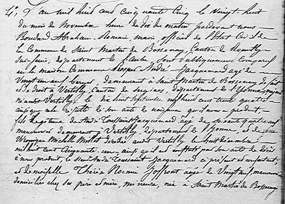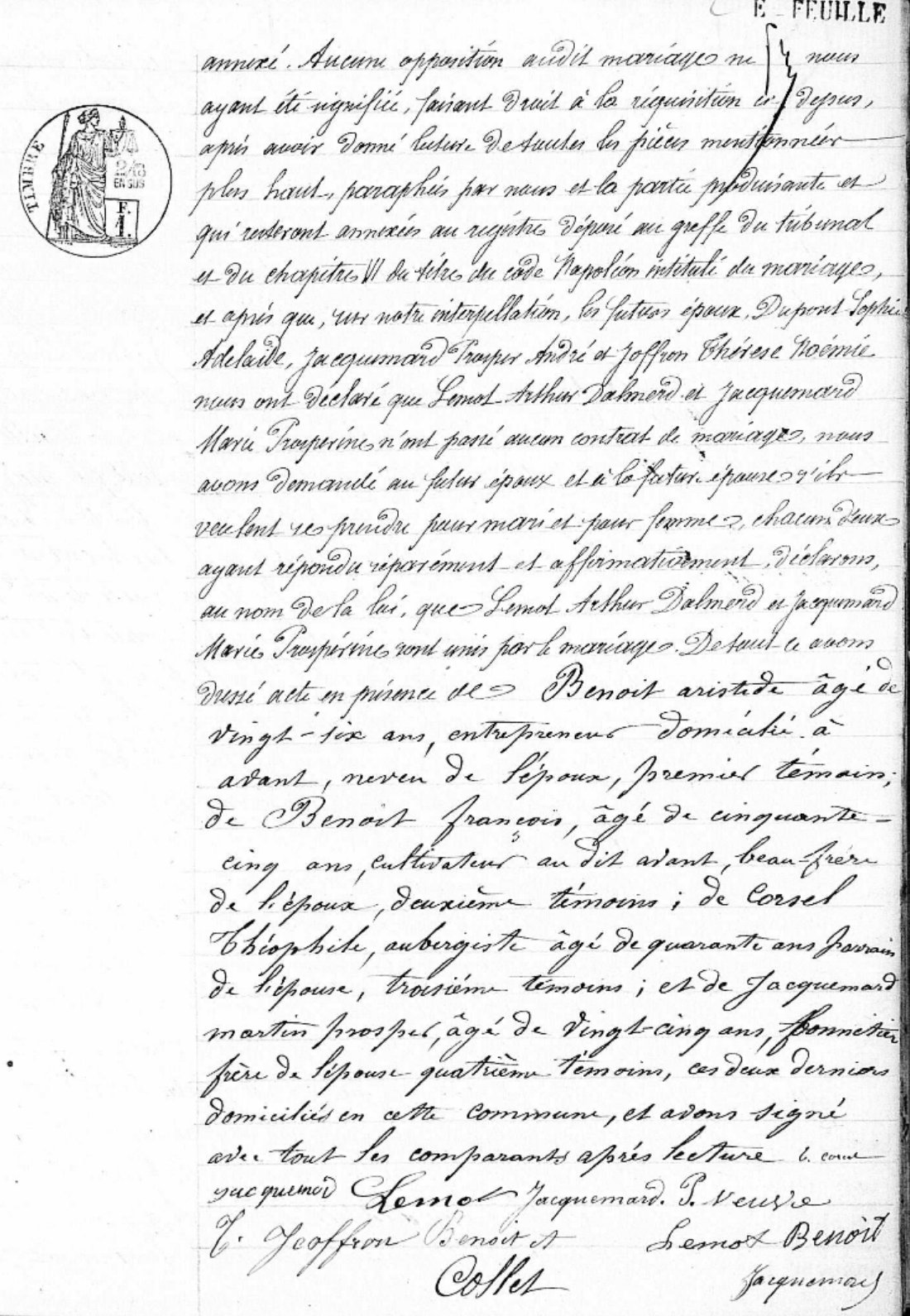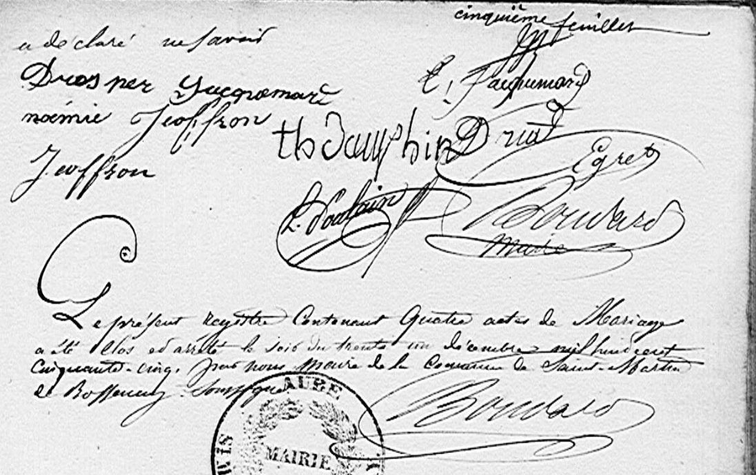acte de naissance). Elle a 33 ans, il a 40 ans, ils sont cousins à la 7ème génération par les Dauphin et les Hennequin (leurs