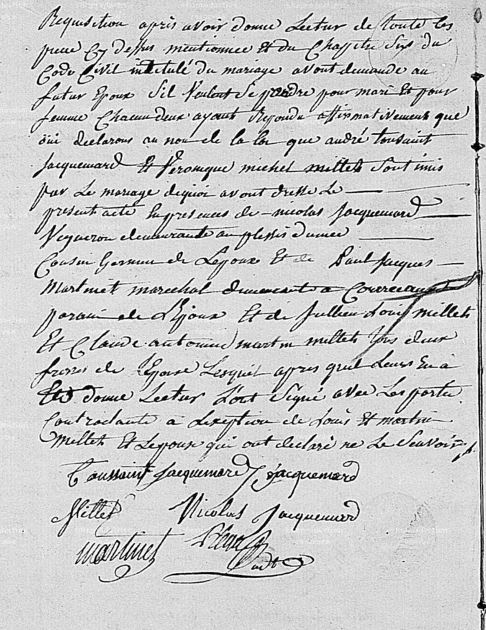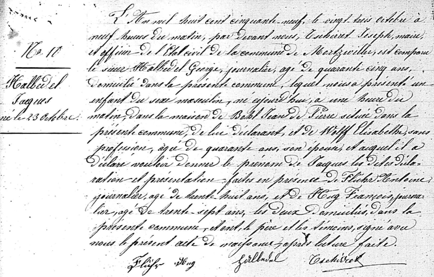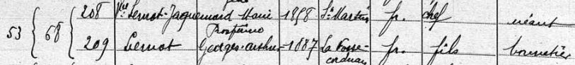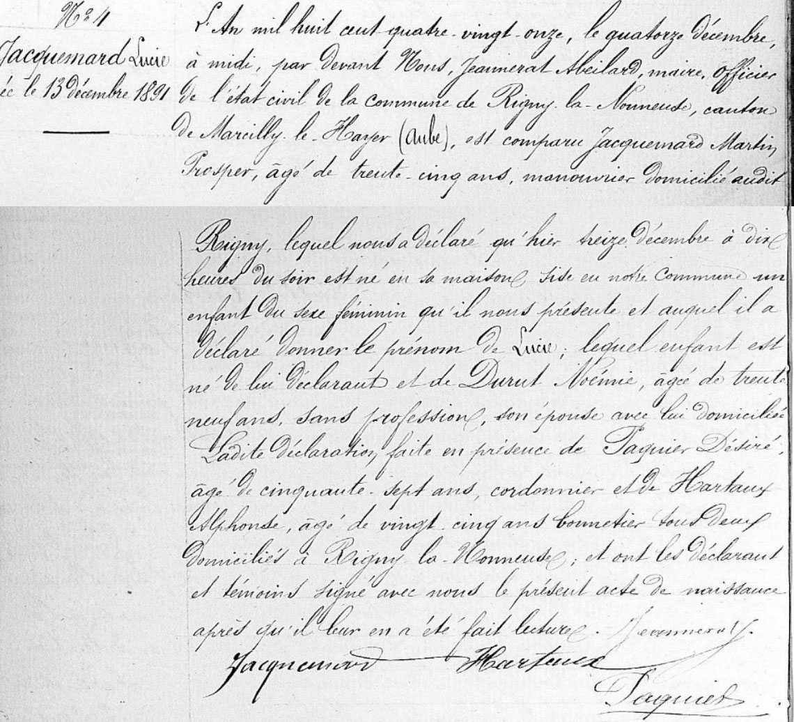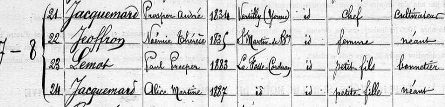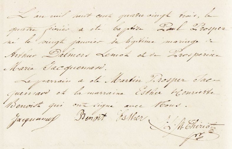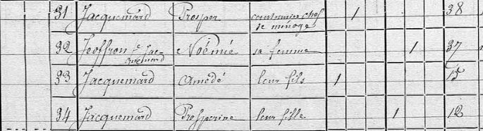 acte de naissance du fils de Martin Prosper dit Prosper Jacquemard et de Thérèse Noémie Joffron dite Noémie Joffron, l'enfant né le 27 octobre 1856 s'appelle Martin Prosper Jacquemard, exactement comme son père. Sur son