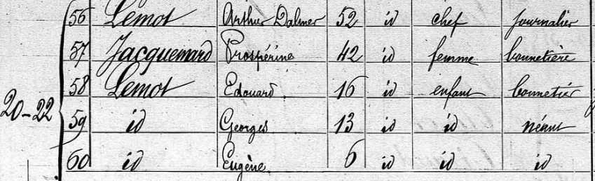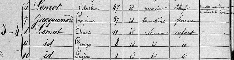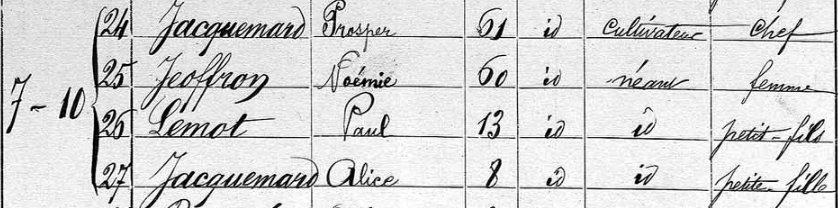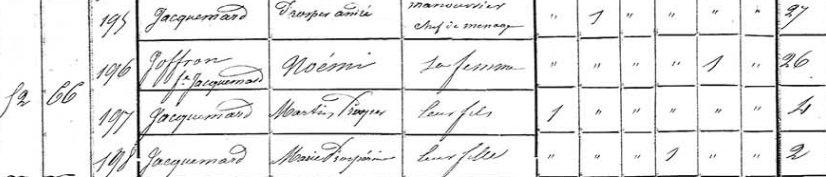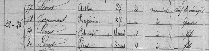 recensement). Son père étant décédé très jeune, à 24 ans en 1853 (