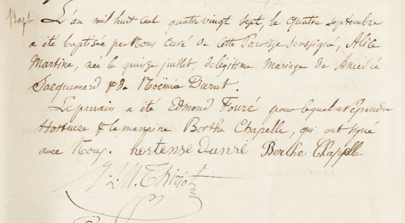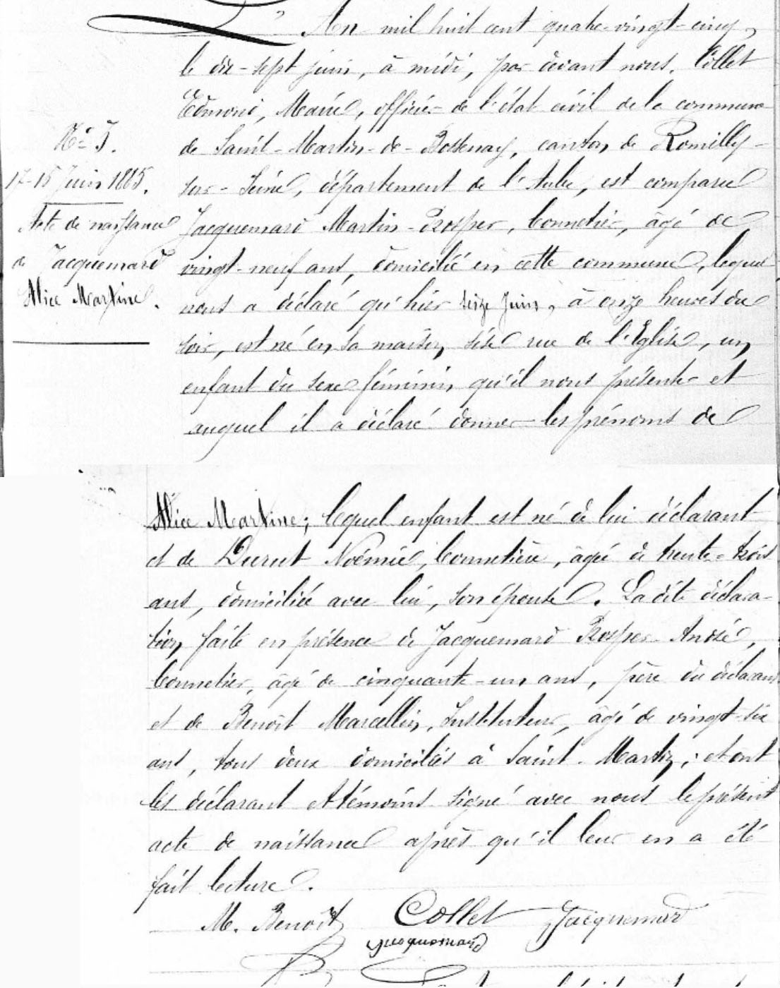 acte). Alice, née en 1887, aura aussi Martine pour second prénom.