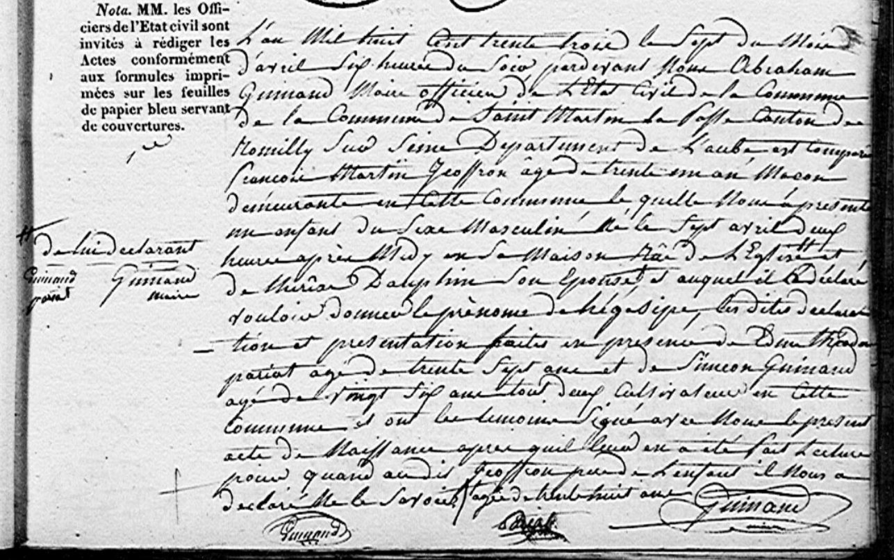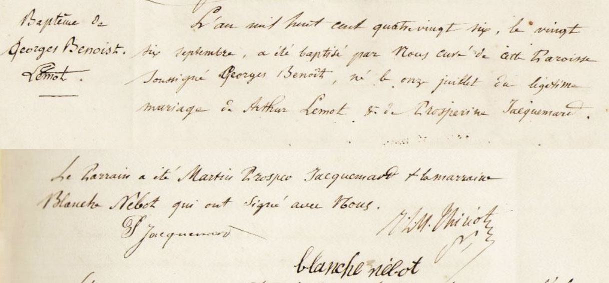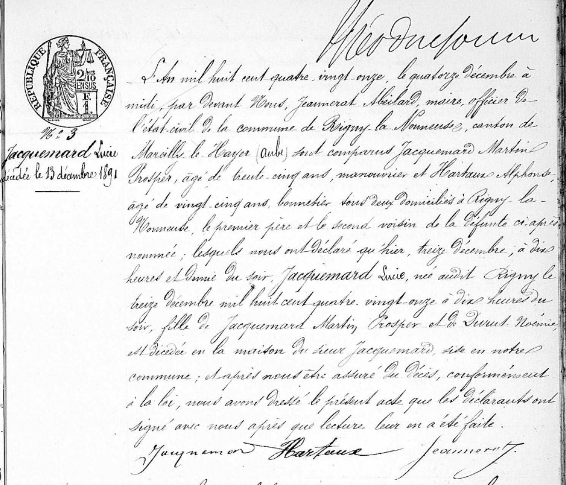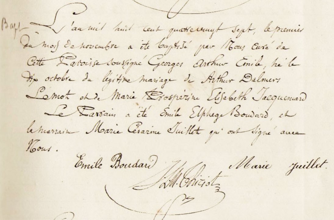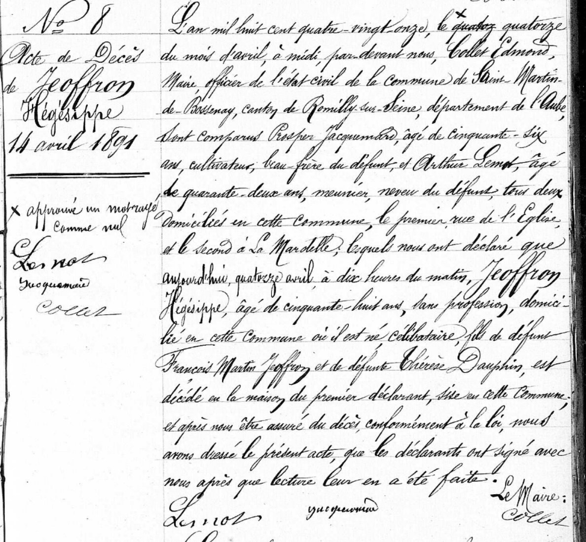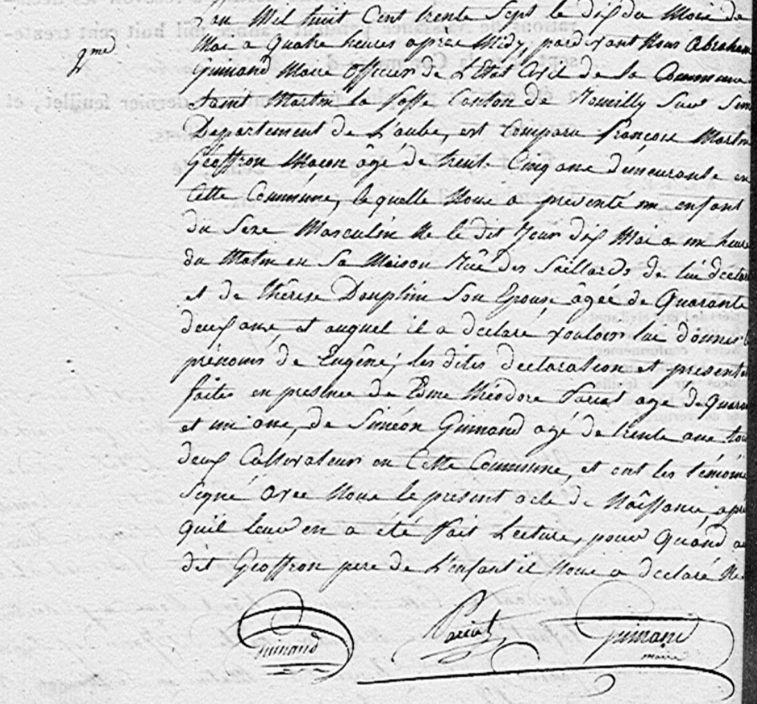 acte de naissance avec pour témoin son oncle Arthur Lemot, meunier). Son