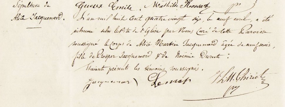 acte) (le parrain est son oncle Amédée Jacquemard) et y est décédé le 30 septembre 1886 (