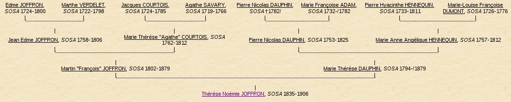 La grand-mère maternelle de Noémie Joffron s'appellait Marie Anne Angélique Hennequin. C'est par la difficile découverte des parents de l'un de ses ascendants Françoys Hennequin (décédé en 1648 à Troyes) qu'il a été possible dans un premier temps d'accéder au monde des bourgeois de Troyes (encadrés ci-dessous) puis de remonter si loin.