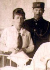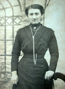Les deux photos ci-dessous à 23 et 69 ans (Prospérine au mariage de son fils Georges, photo de groupe déjà vue) ne présentant pas de dissemblance marquée et Marguerite ayant qualifié sa grand-mère de "petite", ce qu'elle est sur la photo de mariage, on croyait que c'étaient là deux photos de Prospérine.