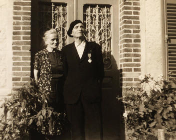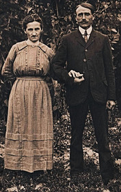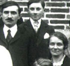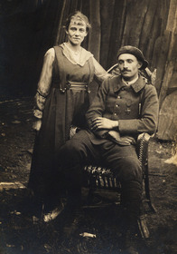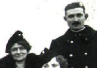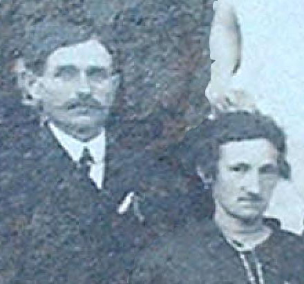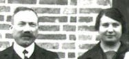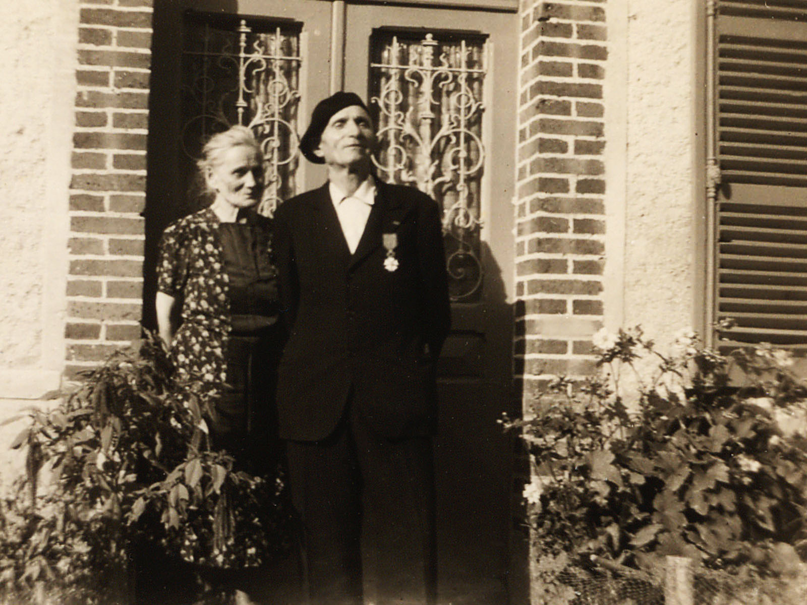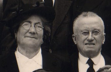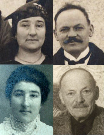 | Autre hypothèse : les mariés seraient Jules Jadot et Lucette Gillopé (cousine germaine de Berthe). Jean-Paul Lemot, fils de Paul junior, qui les a connus âgés (Jules est décédé en 1979, Lucette en 1985), a dit les reconnaître. Voici deux photos de chacun d'entre eux, à des âges différents. La ressemblance de la mariée avec Prospérine apparaît légèrement plus forte. Pour le marié, le choix entre Jules ou Arthur est indécis (si les deux autres photos sont bien des photos d'Arthur...). Le manque de barbe au milieu de la lèvre va légèrement dans le sens d'Arthur. La petite taille des mariés aurait désigné un peu plus Prospérine et Arthur (Lucette et Jules semblent de taille moyenne sur la photo du mariage de Paul en 1936). C'était indécis... |