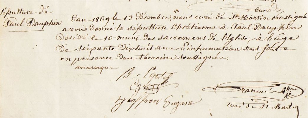 acte de naissance), décédé en 1891 à St Martin à 58 ans (