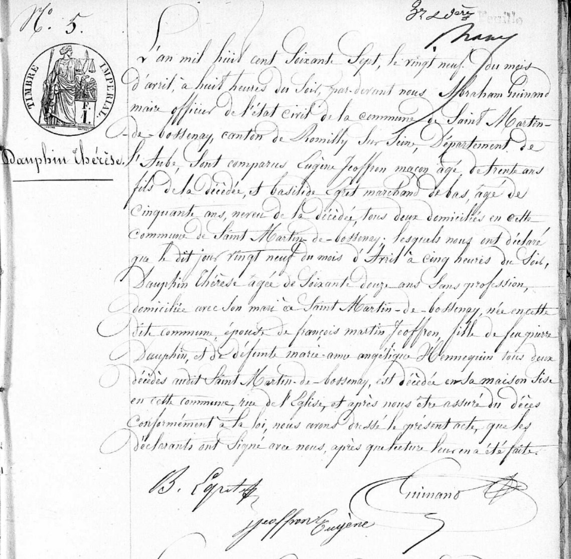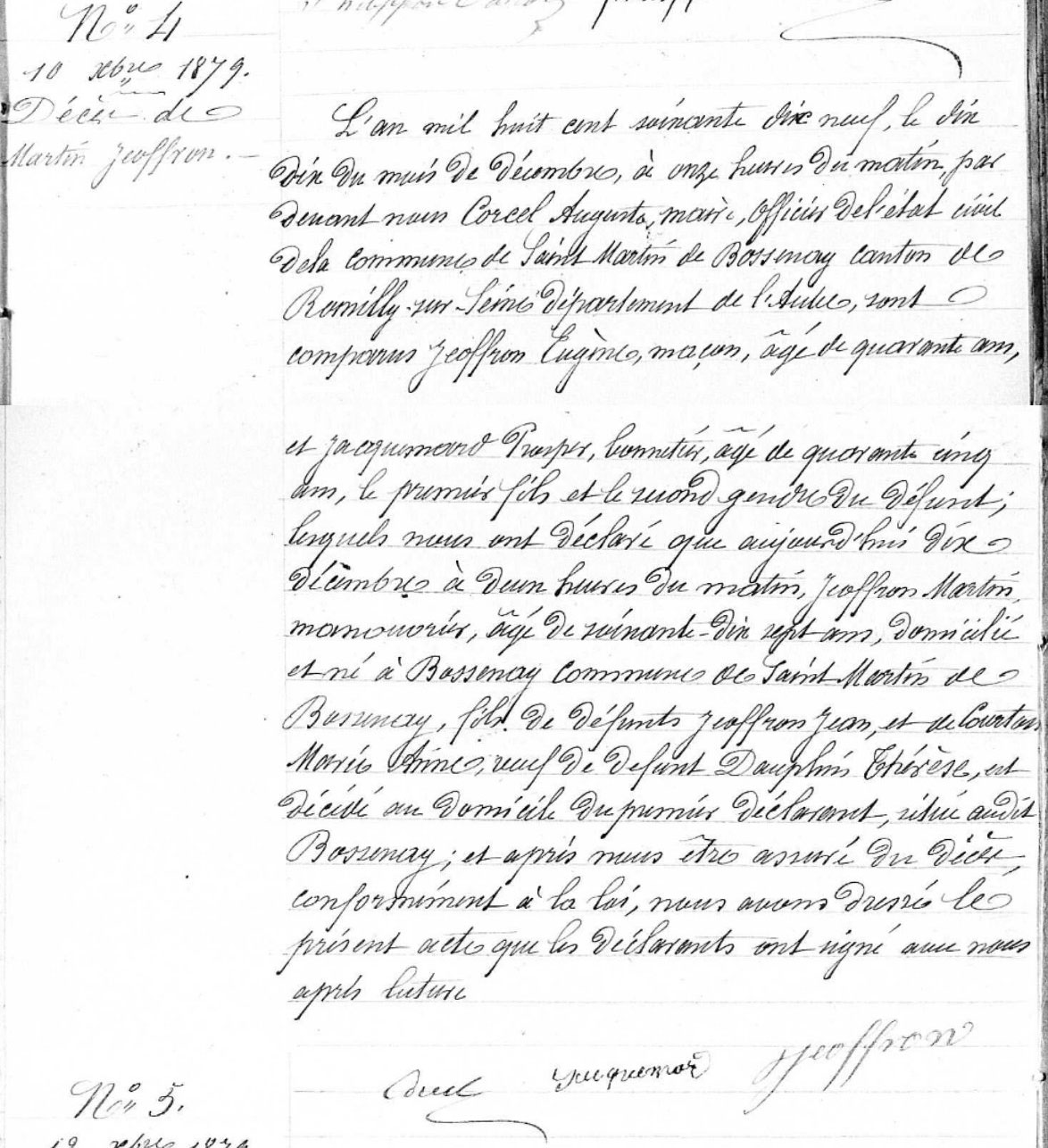 acte), son père Martin François Joffron le 10 décembre 1879, à 77 ans (