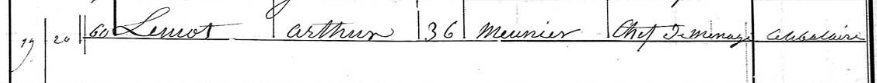 acte), Arthur est fils unique par son père, mais par sa mère il a deux demis-soeurs, Caroline et Louise Dauvet, mariées à Jean Benoist et Louis Gramain. Outre Alice, les quatre frères Lemot avaient donc des cousins germains, Irma, Févronie (marraine d'Edouard), Ernest et Esther Benoist sur la commune voisine d'Avant lès Marcilly, Louis Gramain à Nogent sur Seine. Comme son père, Arthur devient meunier. C'est ce qui l'amène au moulin de La Fosse et à la rencontre avec Prospérine...