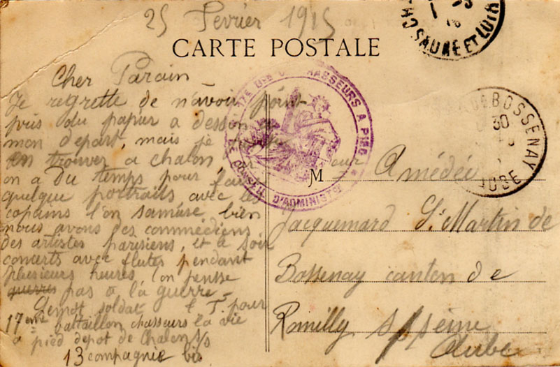 Rectos et versos de photographies sans légende trouvées vers l'an 2000 dans le grenier de Rose, petite-fille d'Arthur. Il en existe d'autres d'origine similaire, et d'autres de Paris, Corbeil, Le Perreux, Lyon, Méry sur Seine (à 17 km de St Martin).