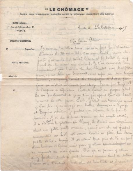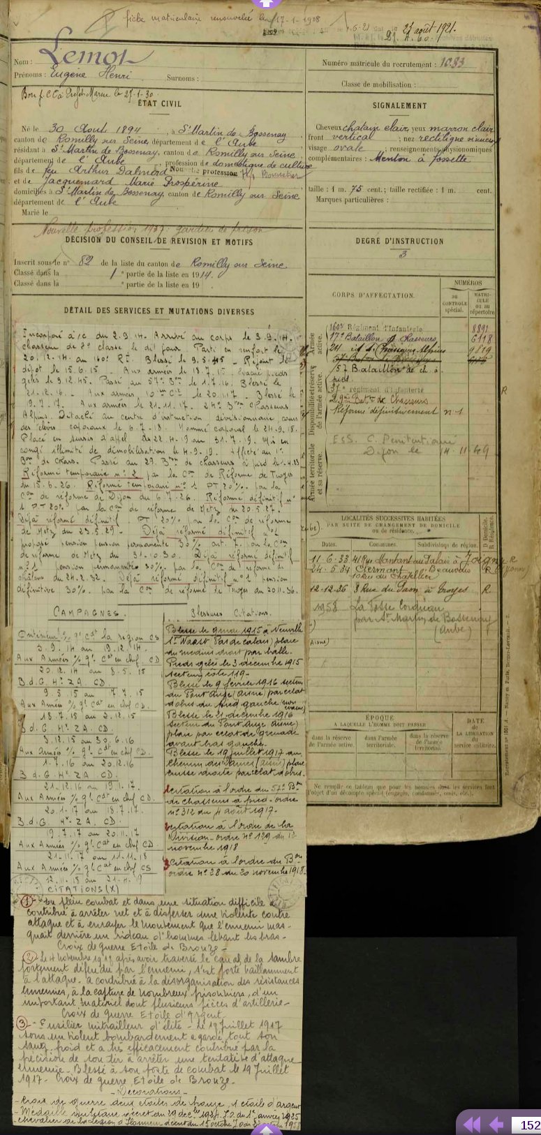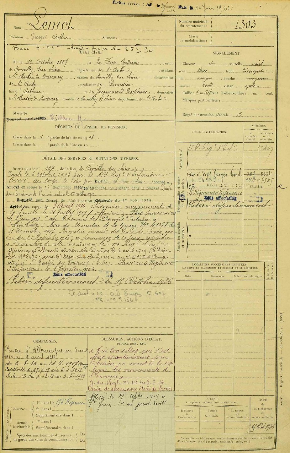 fiche matricule militaire révèle qu'il a fait son service militaire du 6 octobre 1908 au 25 septembre 1910.