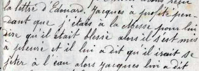 acte) dans le Haut Rhin. Le témoignage de Marguerite, le recensement de 1911 et la lettre du 13 novembre 1915 (ci-avant) de Prospérine à Alice (montrée ci-avant) laissent à penser qu'après la mort d'Arthur, Prospérine et Jacques vivaient comme mari et femme, sans être mariés. Mais qu'en est-il avant 1906 ? Jacques n'est cité nulle part... Arthur était-il réellement absent à l'époque de la naissance d'Eugène en 1894 ? Il est présent le 30 août pour la déclaration de naissance à la mairie, il est absent au baptème le 23 septembre suivant. Il a pu s'absenter quelques mois avant la naissance, même si ce n'est qu'au recensement de 1896 qu'Arthur est mentionné comme travaillant en dehors de la commune. De plus, il n'a même pas besoin de s'absenter pour ne pas être le père. Et peut-être est-ce à cause de cela qu'il s'est ensuite absenté ?