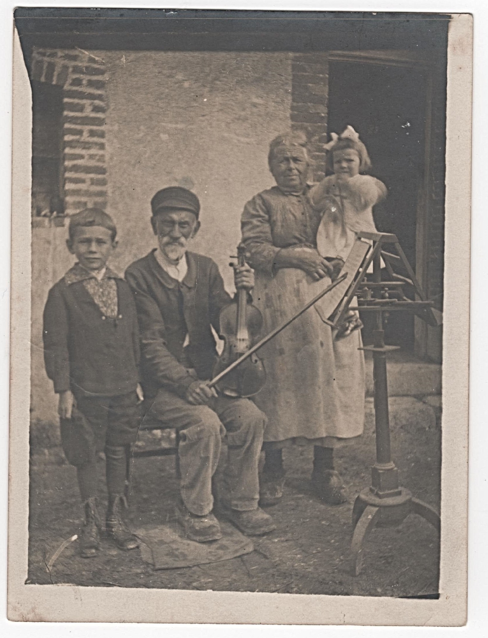 Une photo exceptionnelle de 1889 découverte 130 ans plus tard ! Paul sénior, Prosper, Noémie et Alice. Cette photo, enfouie dans les vieilles affaires d'Alice, est restée oubliée très longtemps avant d'être retrouvée alors que l'on connaît l'existence de cette "famille recomposée" de grands-parents et petits-enfants. Contrairement aux photos d'époque prises en studio dans un décor théâtral, le photographe s'est déplacé pour capturer l'image chez l'habitant dans les habits de tous les jours. Et, cerise sur le gateau, le grand-père Prosper a voulu montrer son loisir préféré, le violon. + la photo avant retouches