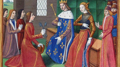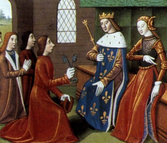 les quatre bourgeois présentant les clés de la ville au roi et à Jeanne figure