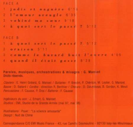 Mis dans le commerce en 1982, dans le coffret "MANSET" de trois 33 tours, référence Pathé C 164-72654/5/6 (coffret réédité en 1984, sous l'intitulé "Trio",